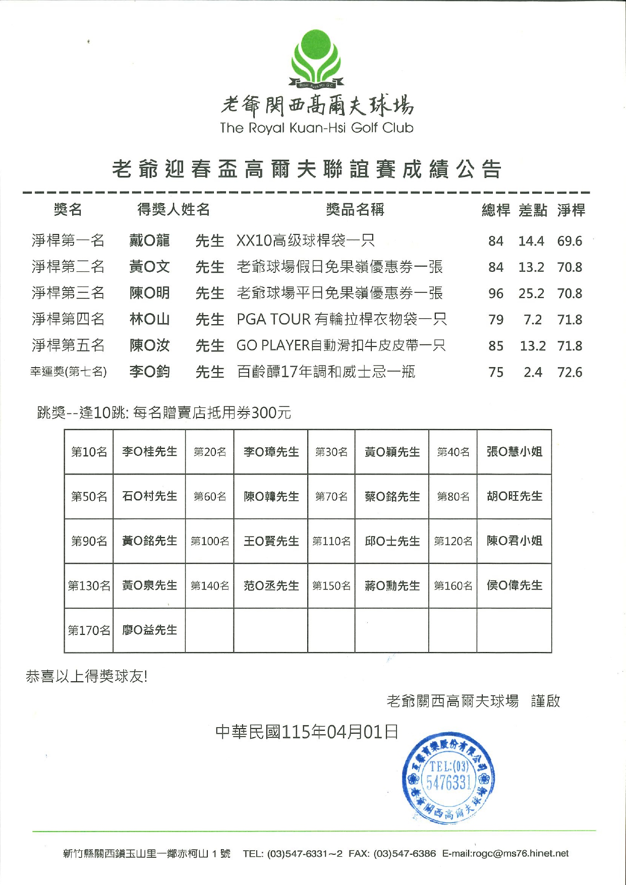 【比賽成績】115.03.31 老爺迎春盃